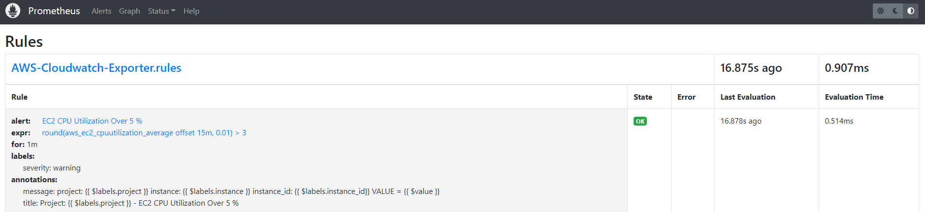 이후 kube-prometheus-stack helm 을 재시작하면 등록된 rule을 확인할 수 있다.