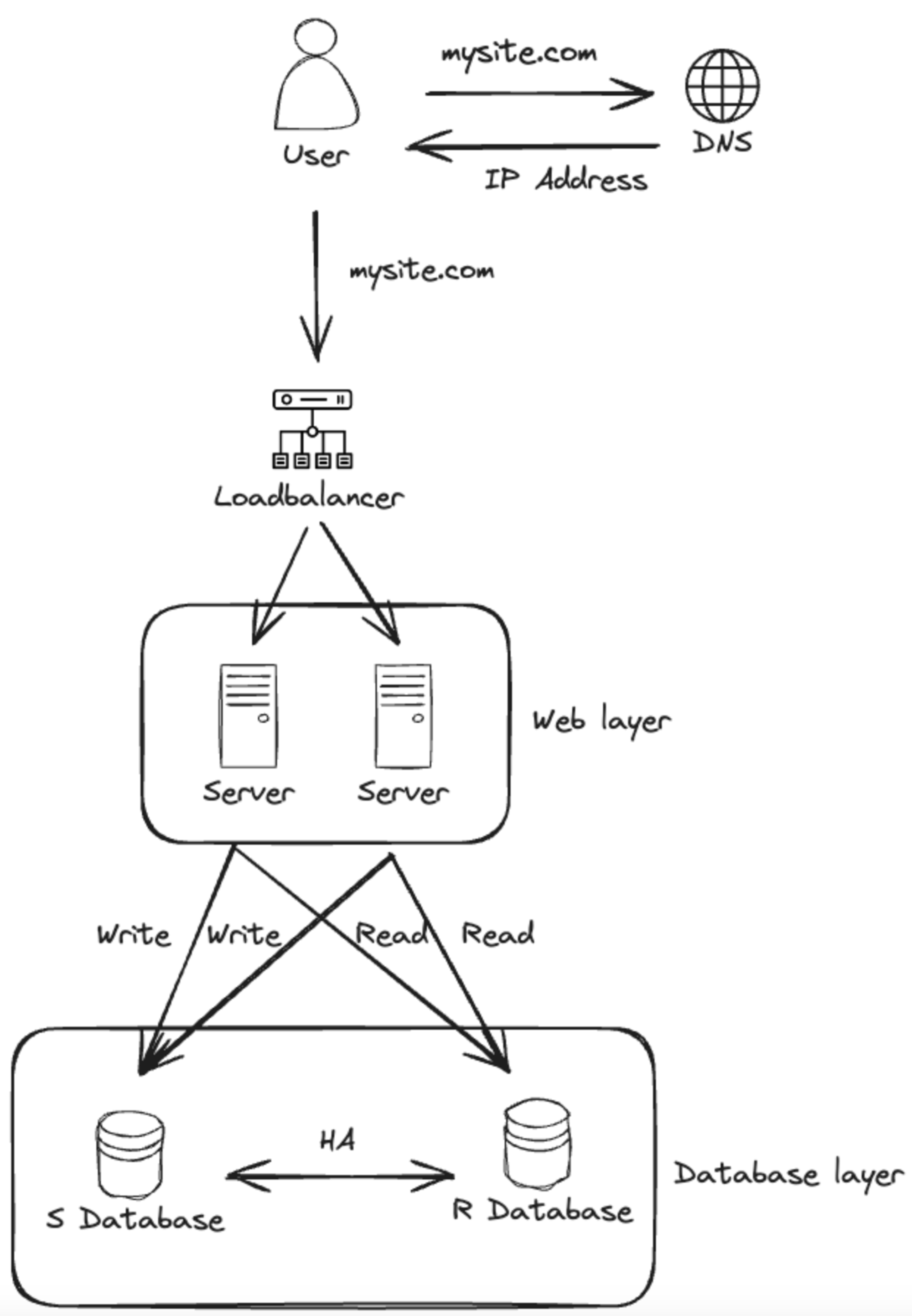 - 웹 서버는 데이터 변경 연산은 주 데이터베이스로 전달한다. (데이터 추가, 삭제, 갱신 등)
