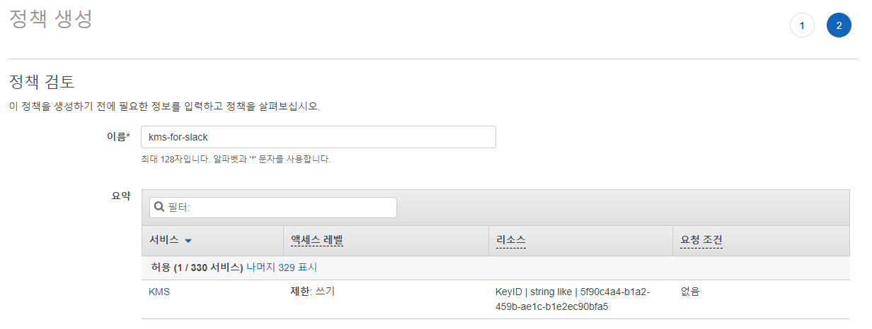 aws kms encrypt --key-id alias/SlackKey2 --cli-binary-format raw-in-base64-out --plaintext "hooks.slack.com/services/T01P8GA78P8/#중략" --region ap-northeast-2