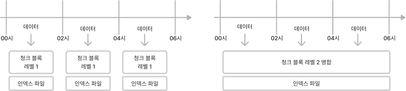 - 불필요한 파일 수를 줄이고 파일 크기를 적절하게 유지하기 위해, 블록 병합을 사용합니다.