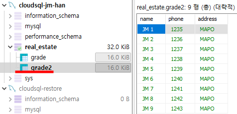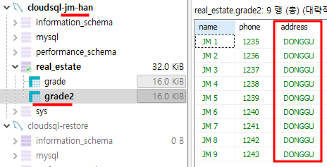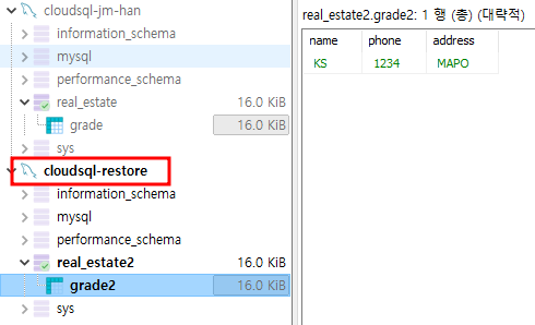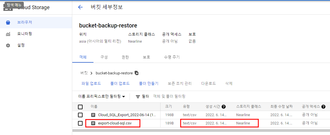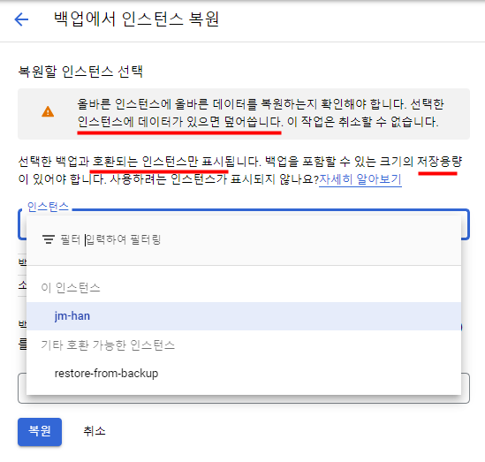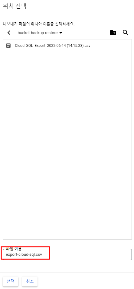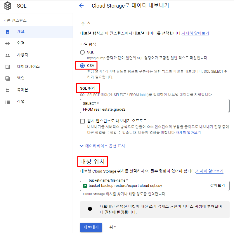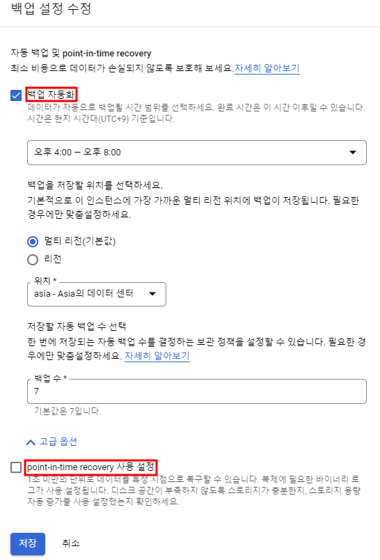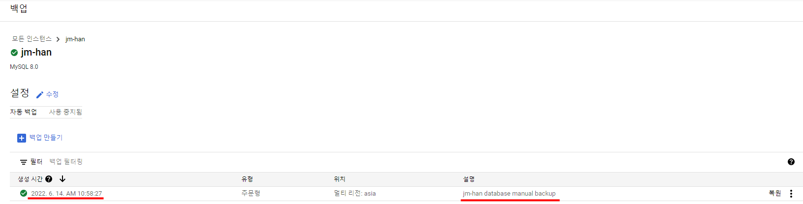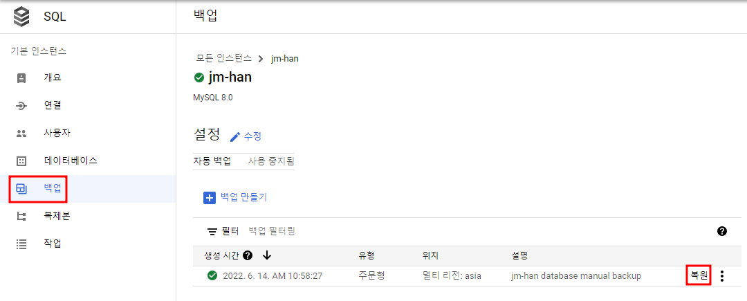 - 백업은 내보낼 수 없다. (GCP에서 관리)