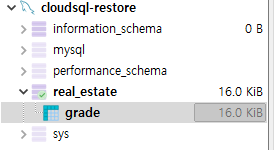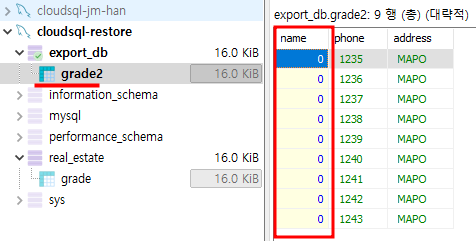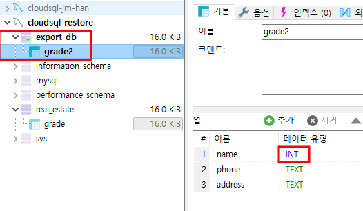 - 새로운 table 명 생성 후 가져오기 실행 (기존에 데이터 존재 X)