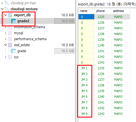 - 기존의 grade2 table의 데이터를 변경 한 후 내보내기 한 데이터를 가져온다.