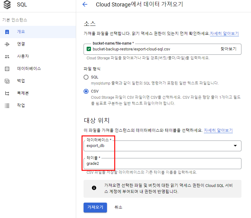 데이터 가져오기 및 내보내기 권장사항 | MySQL용 Cloud SQL | Google Cloud