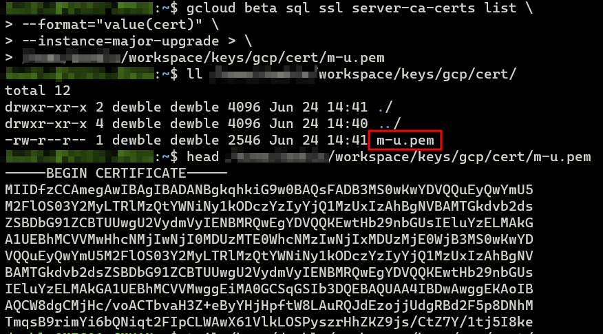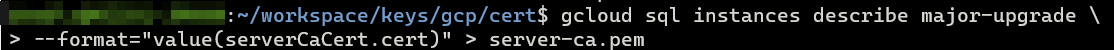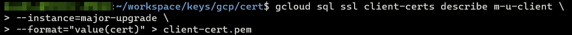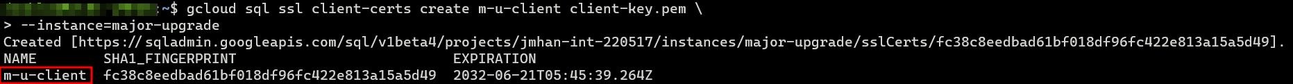 gcloud sql ssl client-certs create CERT_NAME client-key.pem \