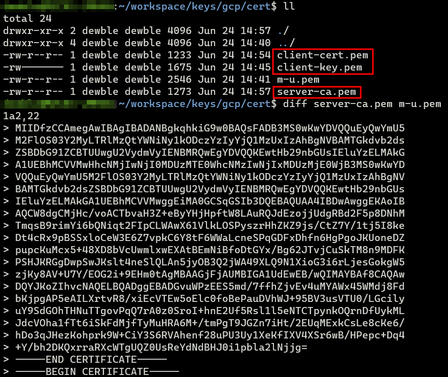 client-cert.pem으로 저장된 클라이언트 공개 키 인증서