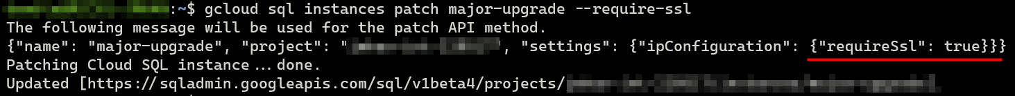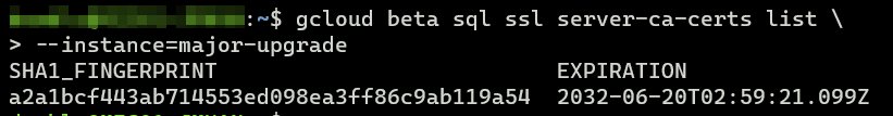 --host=INSTANCE_IP --ssl-mode=verify_ca --user=root --password
