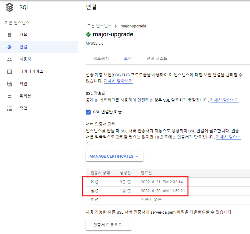 - 인증서 만료에 관한 알림(3개월전에 메일)을 받았거나 순환을 시작한 경우 진행