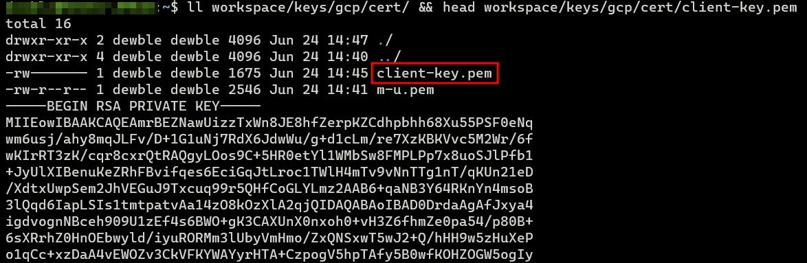 client-key.pem으로 저장된 클라이언트 비공개 키