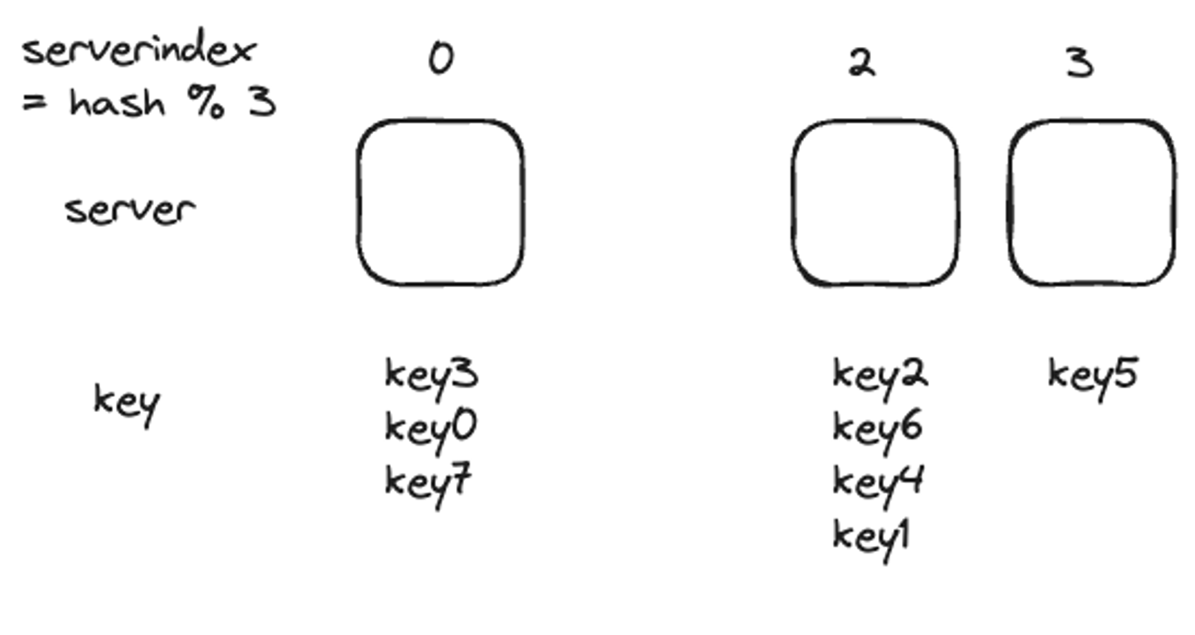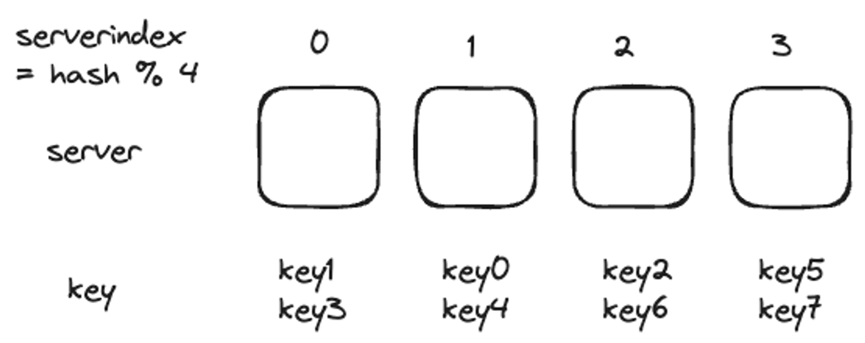 e.g.) key0은 server0에 저장, key1은 server1에 저장 된다.