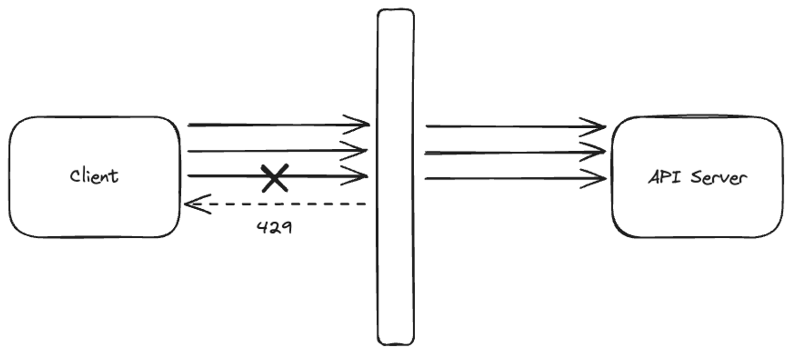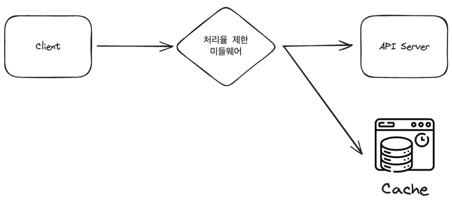 - 제한된 요청이라고 판단되면 서버에 안보내고, 미들웨어 단에서 HTTP 429(Too many requests) 반환합니다.
