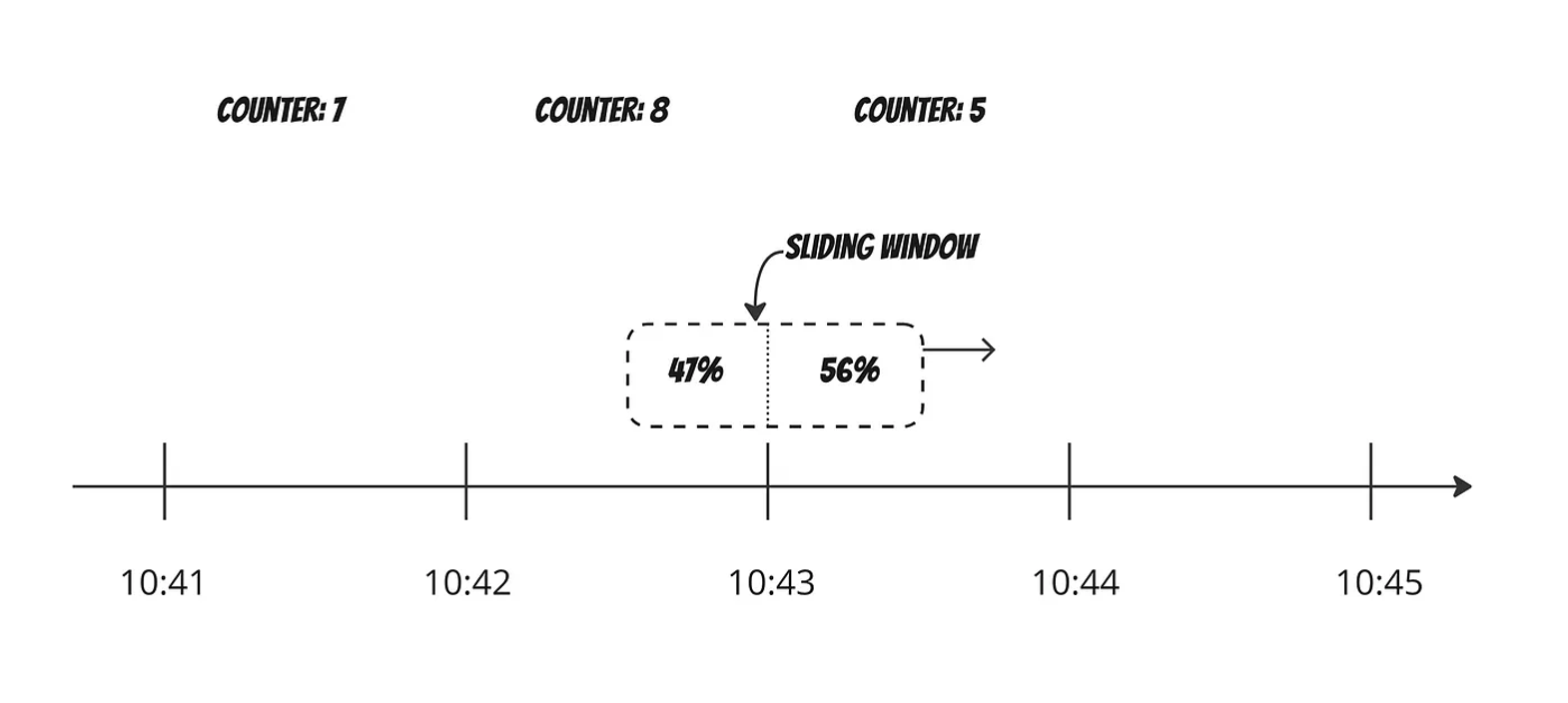 - 카운터: 각 윈도마다 하나의 카운터가 있습니다. 요청이 들어올 때마다 해당 윈도의 카운터가 1씩 증가합니다.