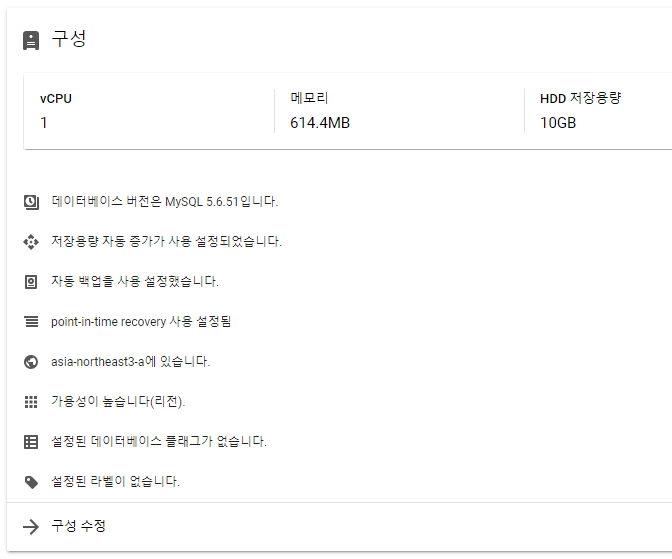 - Cloud SQL에서는 유지보수 중 부 버전을 정기적으로 업데이트한다.