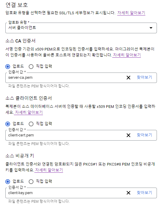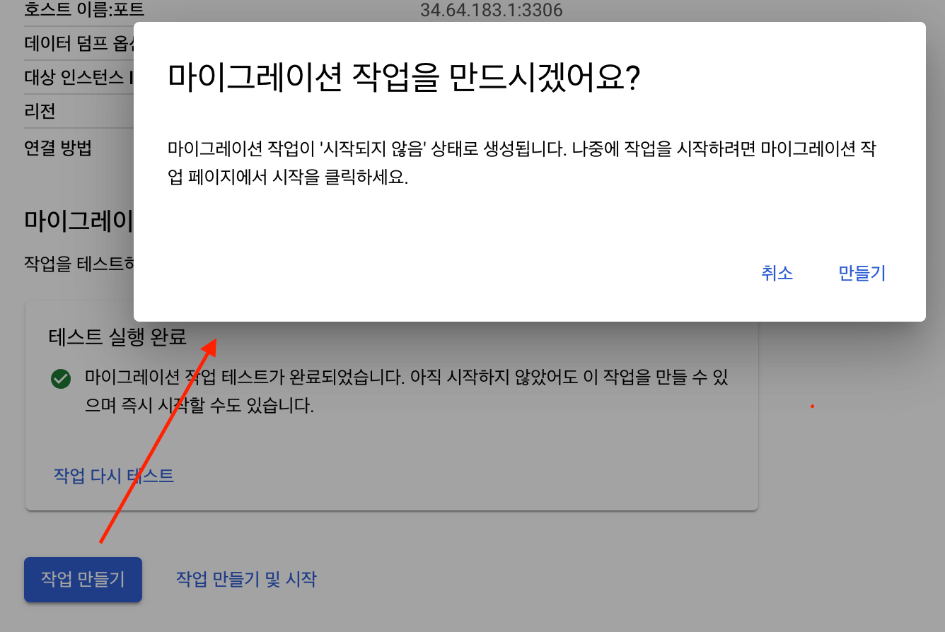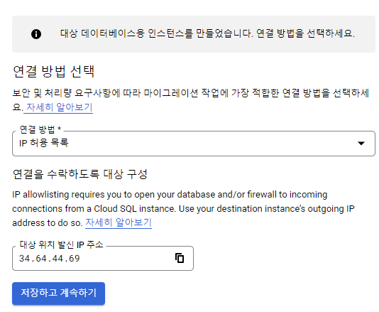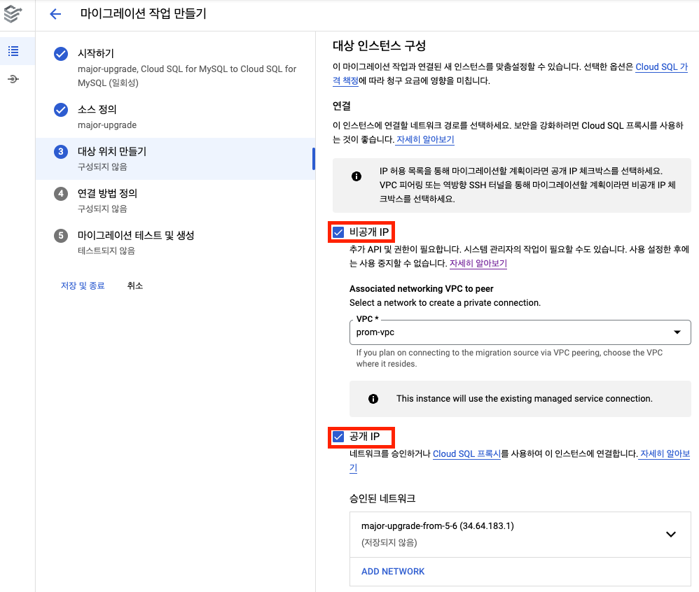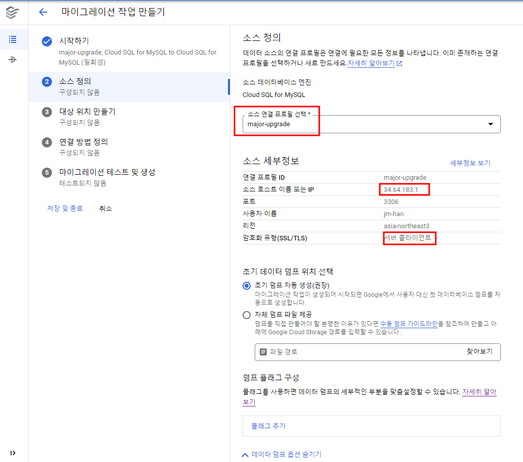 - 대상 인스턴스 구성 부분은 CloudSQL 인스턴스 생성과 동일
