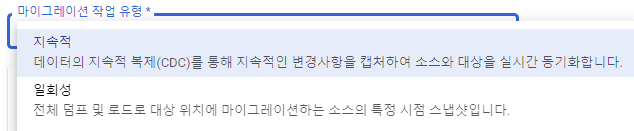 - 마이그레이션 작업 유형*CDC (Change Data Capture)