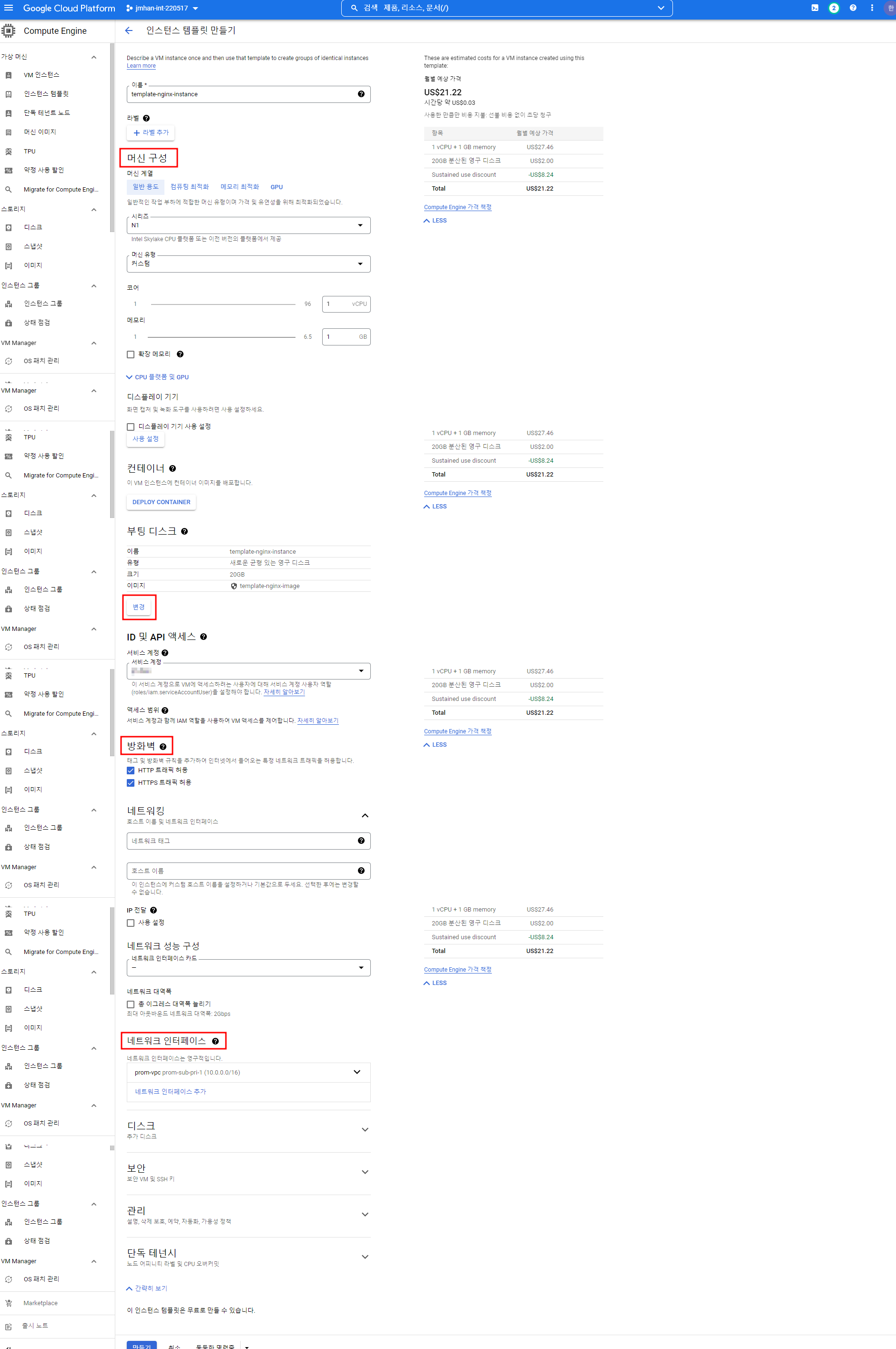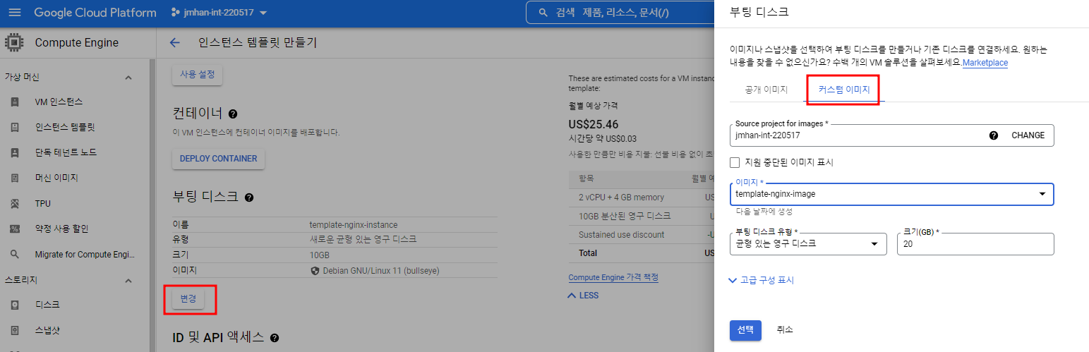 - 생성한 Image를 부팅디스크로 설정해 인스턴스 템플릿을 만든다.