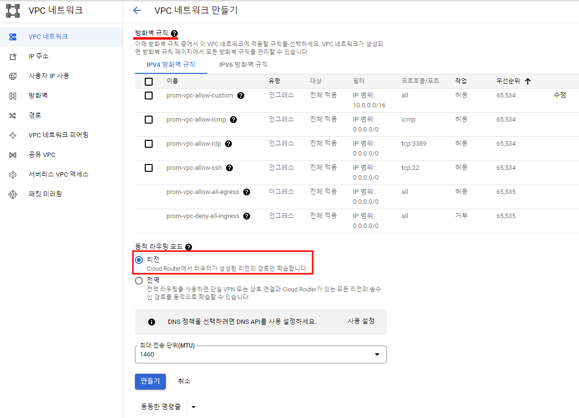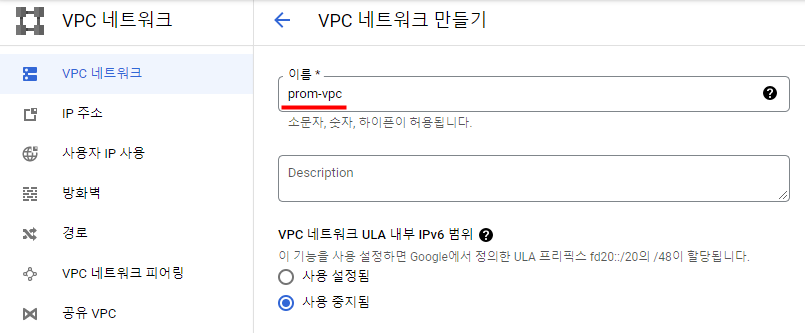 VPC 네트워크 만들기
