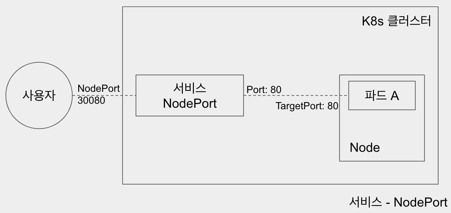 사용자는 nodeIP:30080 을 통해 파드 A에 접근할 수 있다.