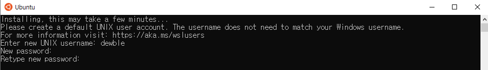 - 설치 후 Ubuntu 앱을 찾아 실행시키면 설치가 진행된다.