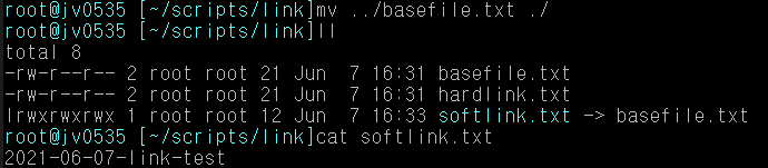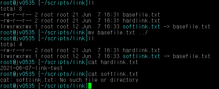 원본 파일이 변경되면 softlink로 찾을 수 없다.