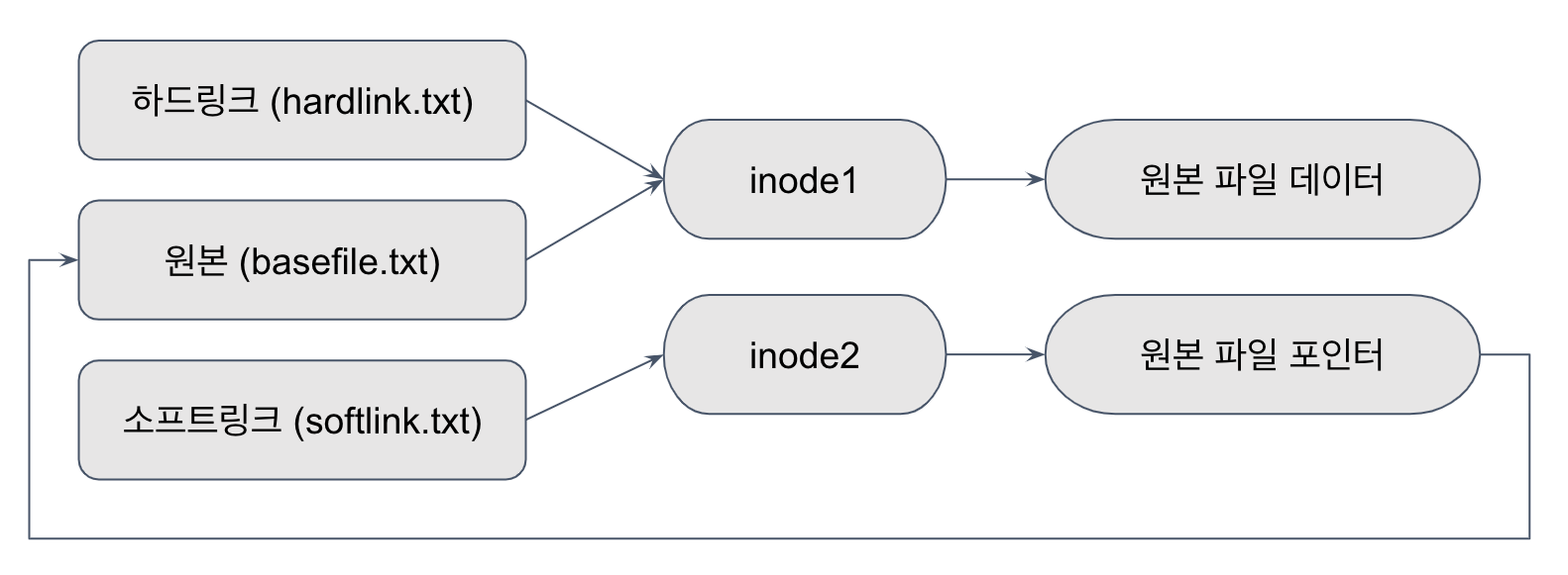 하드 링크를 생성하면 하드링크 파일이 생성되고 원본 파일과 같은 inode를 사용한다.