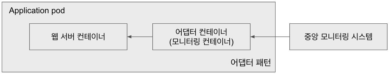 - 파드 외부로 노출되는 정보를 표준화하는 어댑터 컨테이너를 사용한다.