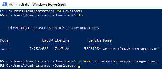 msiexec /i [경로]/amazon-cloudwatch-agent.msi