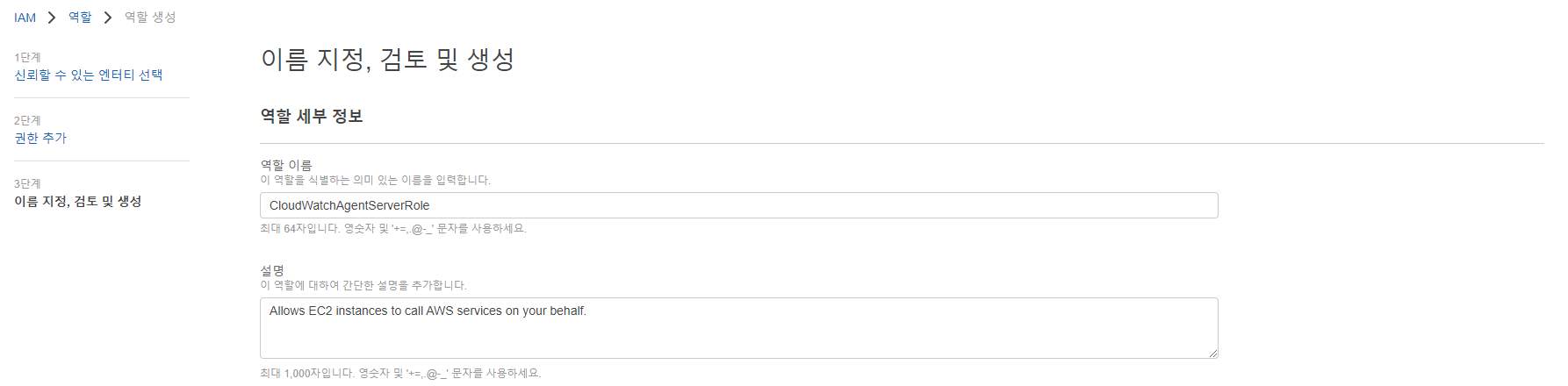 EC2 인스턴스에서 CloudWatch 에이전트를 실행하는 데 필요한 IAM 역할을 생성