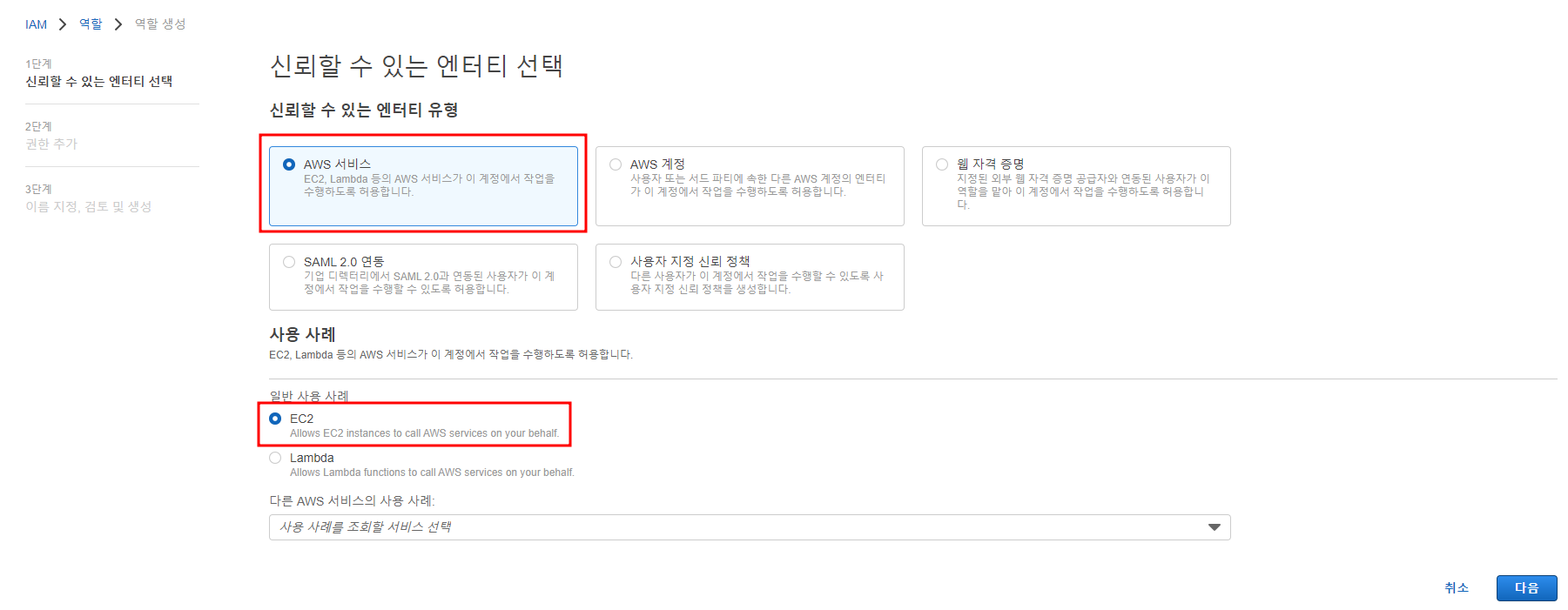 - 위에서 생성한 Role을 EC2에 연결