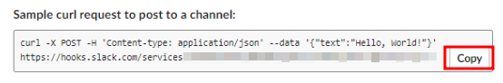 curl -X POST -H 'Content-type: application/json' --data '{"text":"Hello, World!"}' <https://hooks.slack.com/services/T01P8GA78P8/##중략>