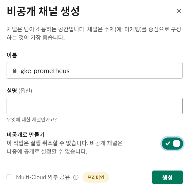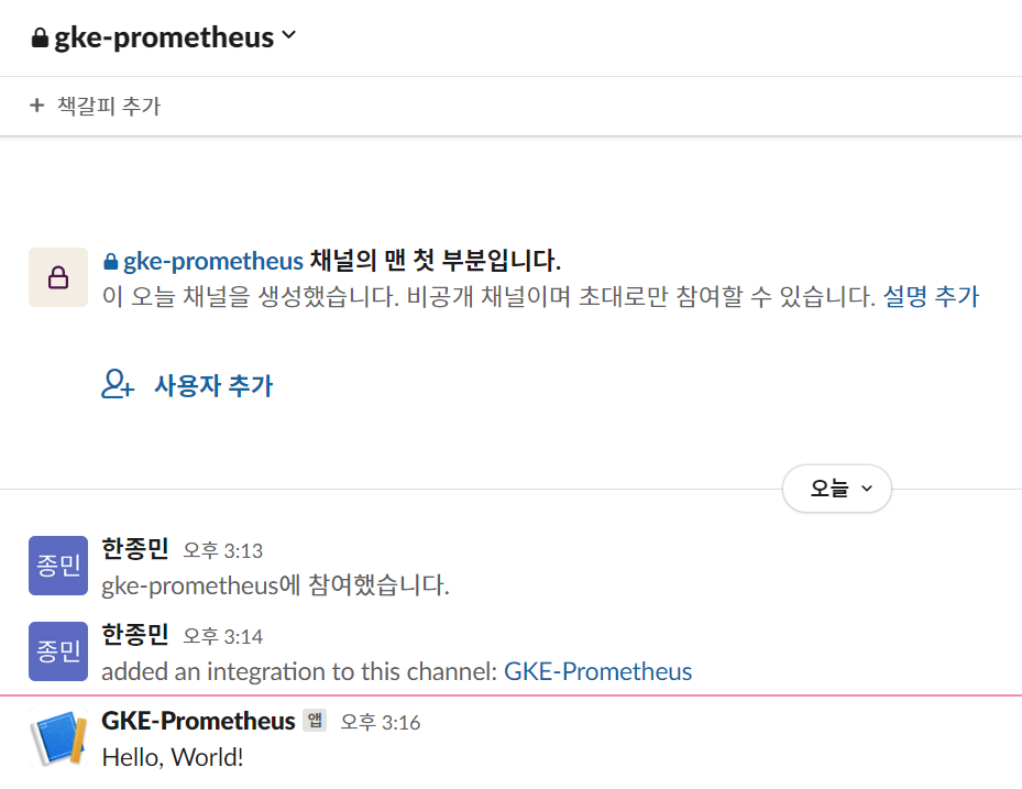 - channel: 'gke-prometheus' ## The channel or user to send notifications to / 의미가 없어보임 내가 확인하기 위해 작성