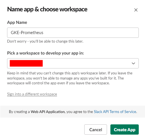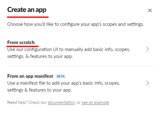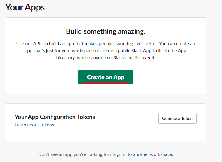 - 메시지를 포스트할 워크스페이스에 새 Slack 앱을 생성(link)한다.
