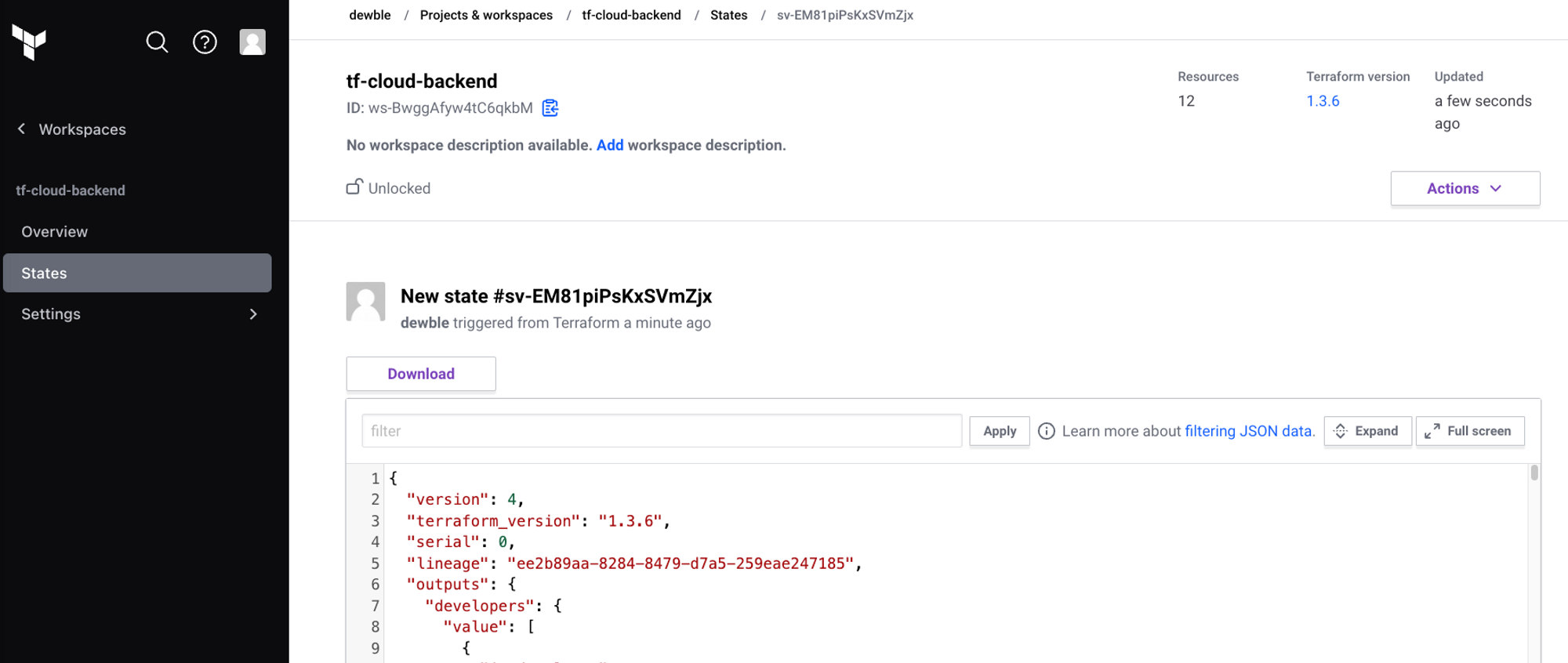 workspace = “tf-cloud-backend”