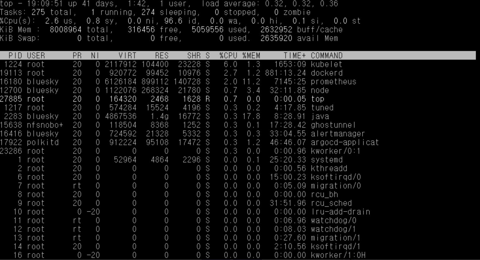 top의 전체 출력 결과를 보고 싶거나, 출력을 별도 파일로 저장하고 싶다면 top을 배치모드로 실행하면 된다.