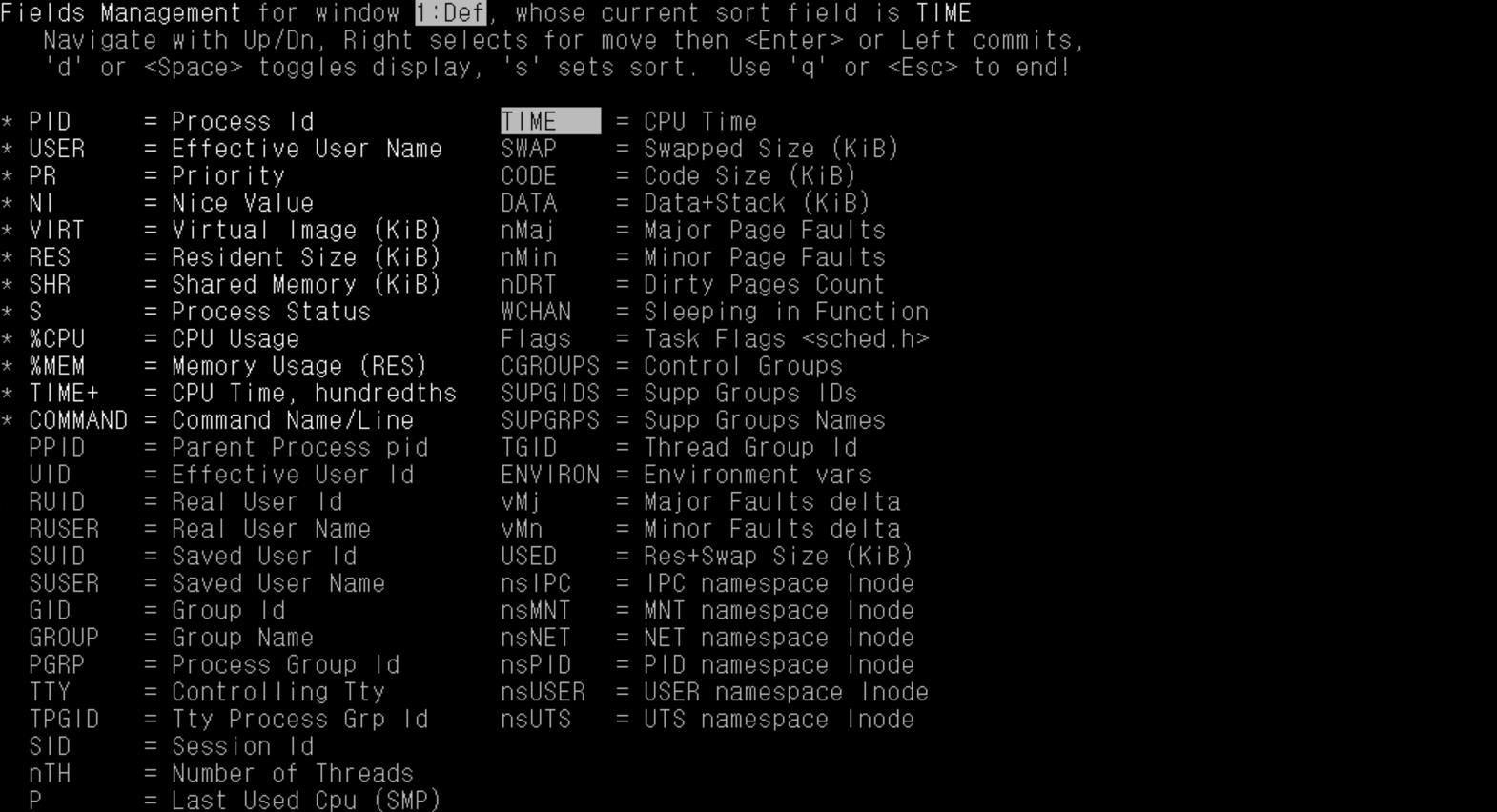 정렬을 Time 기준으로 오랜 시간동안 동작한 작업을 기준으로 상단에 보여진다.