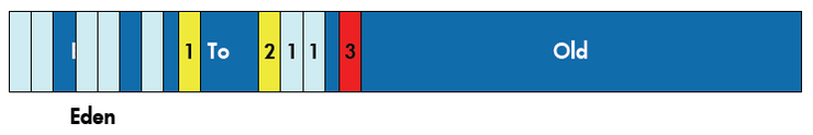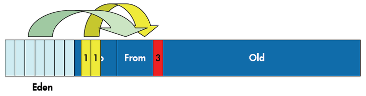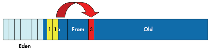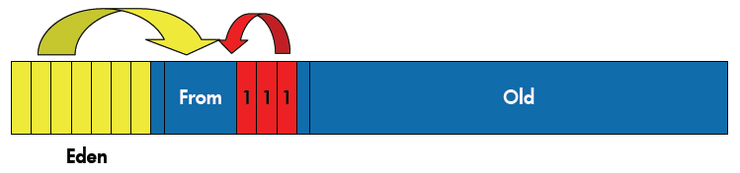 13. live object의 이동이 완료되면 From에는 object들의 TenuringThreshold값이 Eden에서 옮겨온 object는 1로 To에서 옮겨온 object는 2로 설정된다.