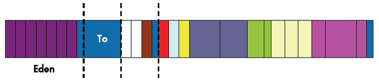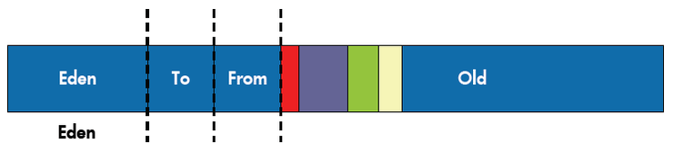 5. Eden의 garbage를 scanvenge하여 깨끗하게 만든다(minor collection). 이 작업 후에는 Eden영역이 항상 깨끗하게 비어지게 된다(Completely Empty). 그리고 To에 live object TeunuringThreshold 값은 1이된다.