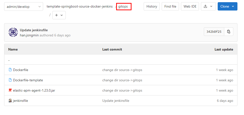 → 소스코드에 gitops 폴더를 복사하여 프로젝트 구성