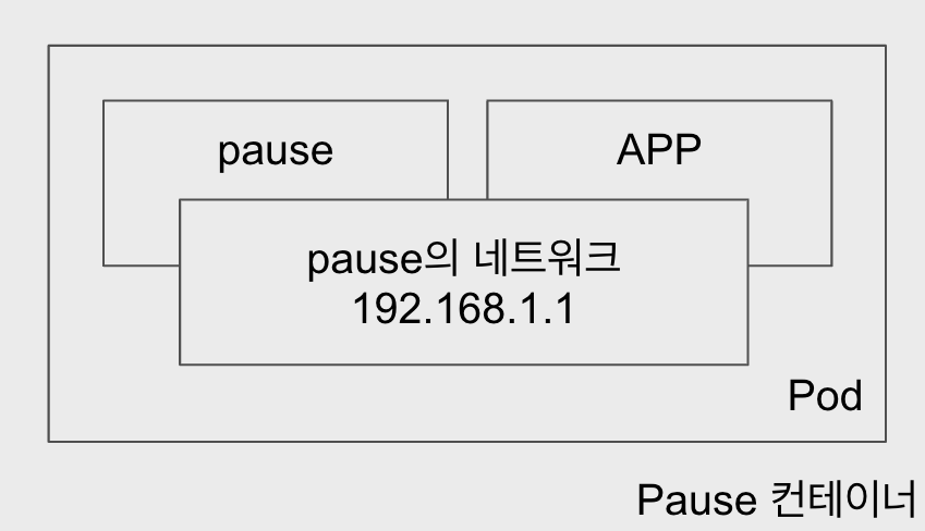 쿠버네티스에는 모든 파드에서 항상 실행되는 pause라는 컨테이너가 있다. 이 pause를 파드 인프라 컨테이너라고 한다.